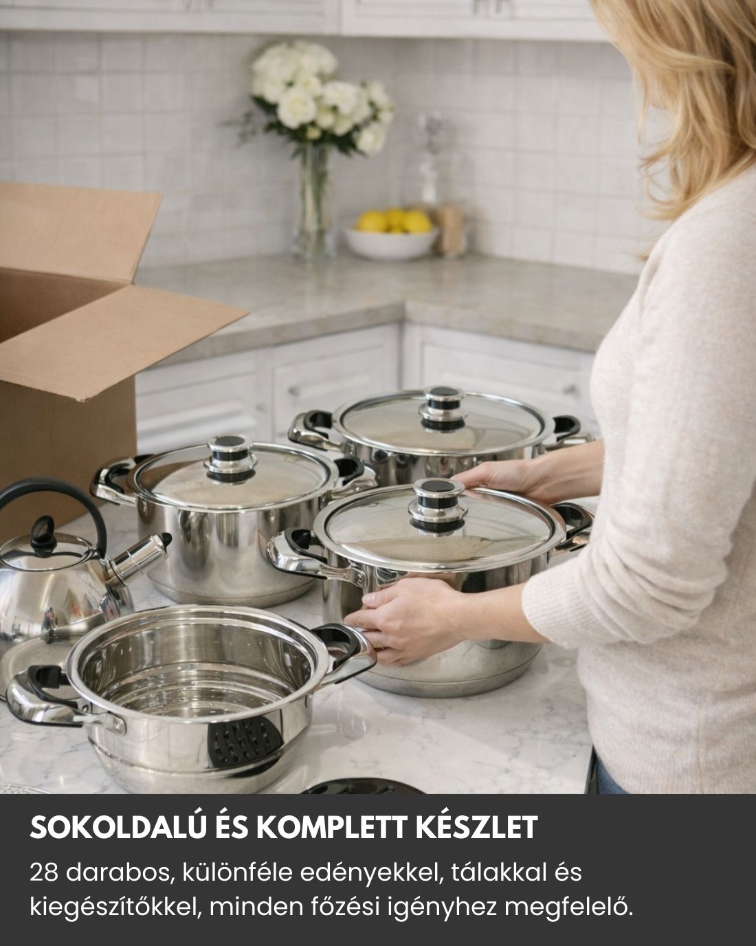 - Teljes készlet: 28 darabos összeállítás, amely lefedi a mindennapi és ünnepi főzés minden igényét