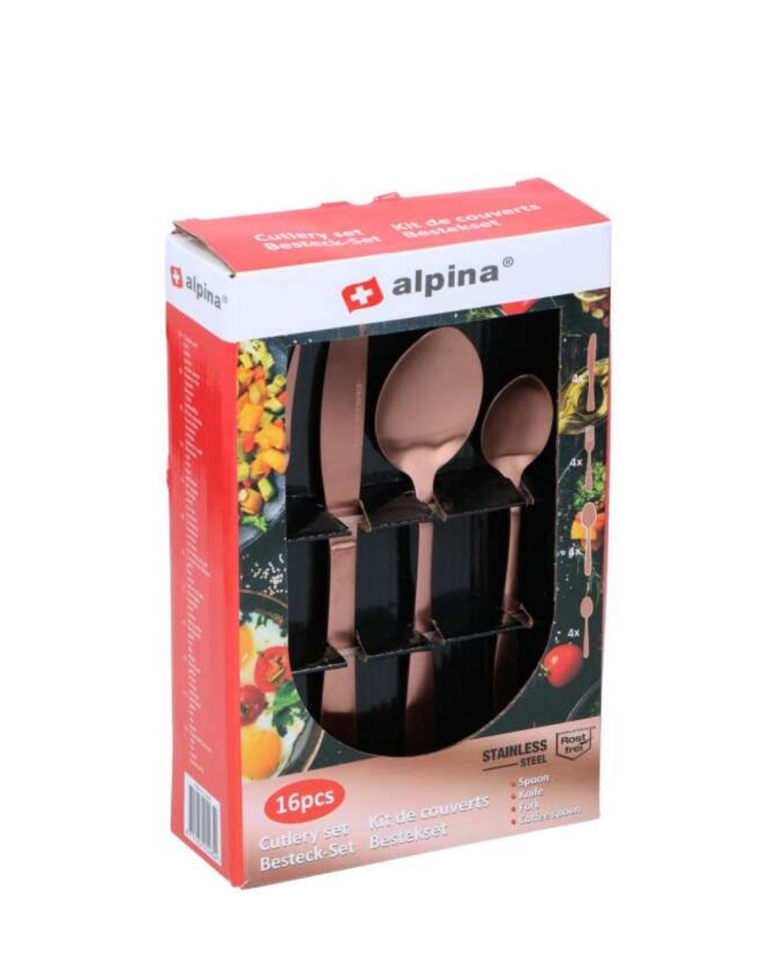 Az Alpina 16 részes rosegold evőeszköz szett a kifinomult elegancia és a modern design tökéletes ötvözete. A különleges rosegold árnyalat meleg, exkluzív hangulatot teremt az asztalon, amely azonnal kiemeli a terítéket, legyen szó hétköznapi étkezésről vagy ünnepi alkalomról.