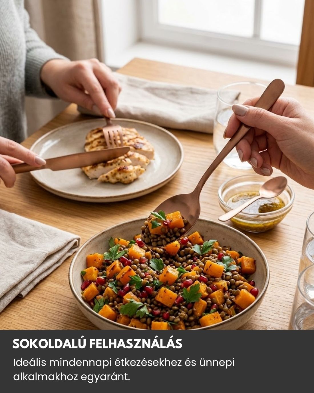 Ez az evőeszköz szett nem csupán praktikus konyhai kellék, hanem egy stílusos kiegészítő is, amely új szintre emeli az étkezési élményt.