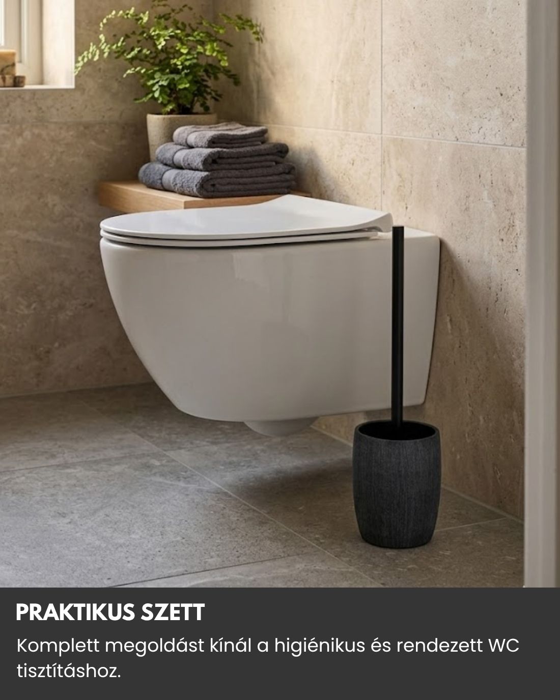 A készlet mindent tartalmaz, ami a WC tisztításához szükséges, így kényelmes és higiénikus megoldást kínál.