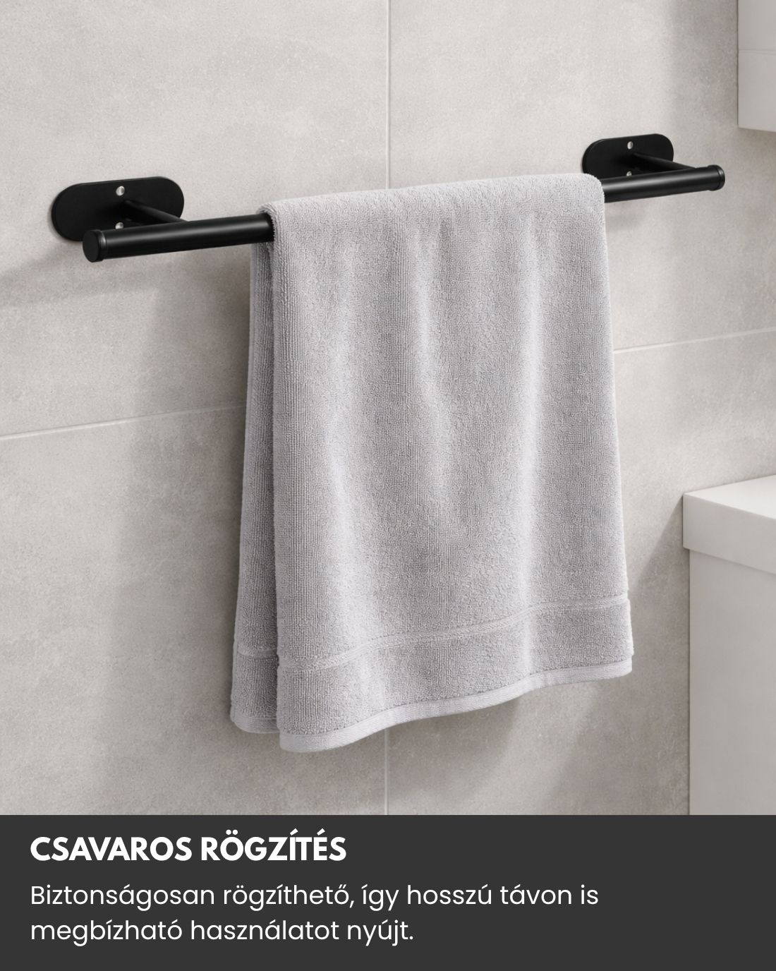 A 60 cm-es hossz elegendő helyet biztosít egy vagy akár több törölköző elhelyezésére, ezért ideális mind kisebb, mind nagyobb fürdőszobákba. A csavaros rögzítés stabil és tartós tartást biztosít, így a tartó nem mozdul el használat közben.