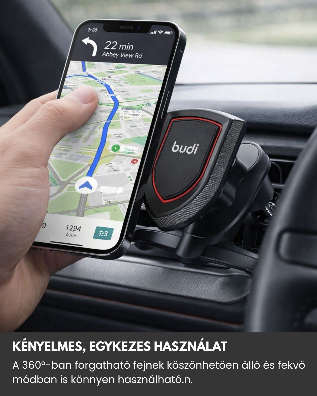 Stabil rögzítés és kényelmes használat vezetés közben