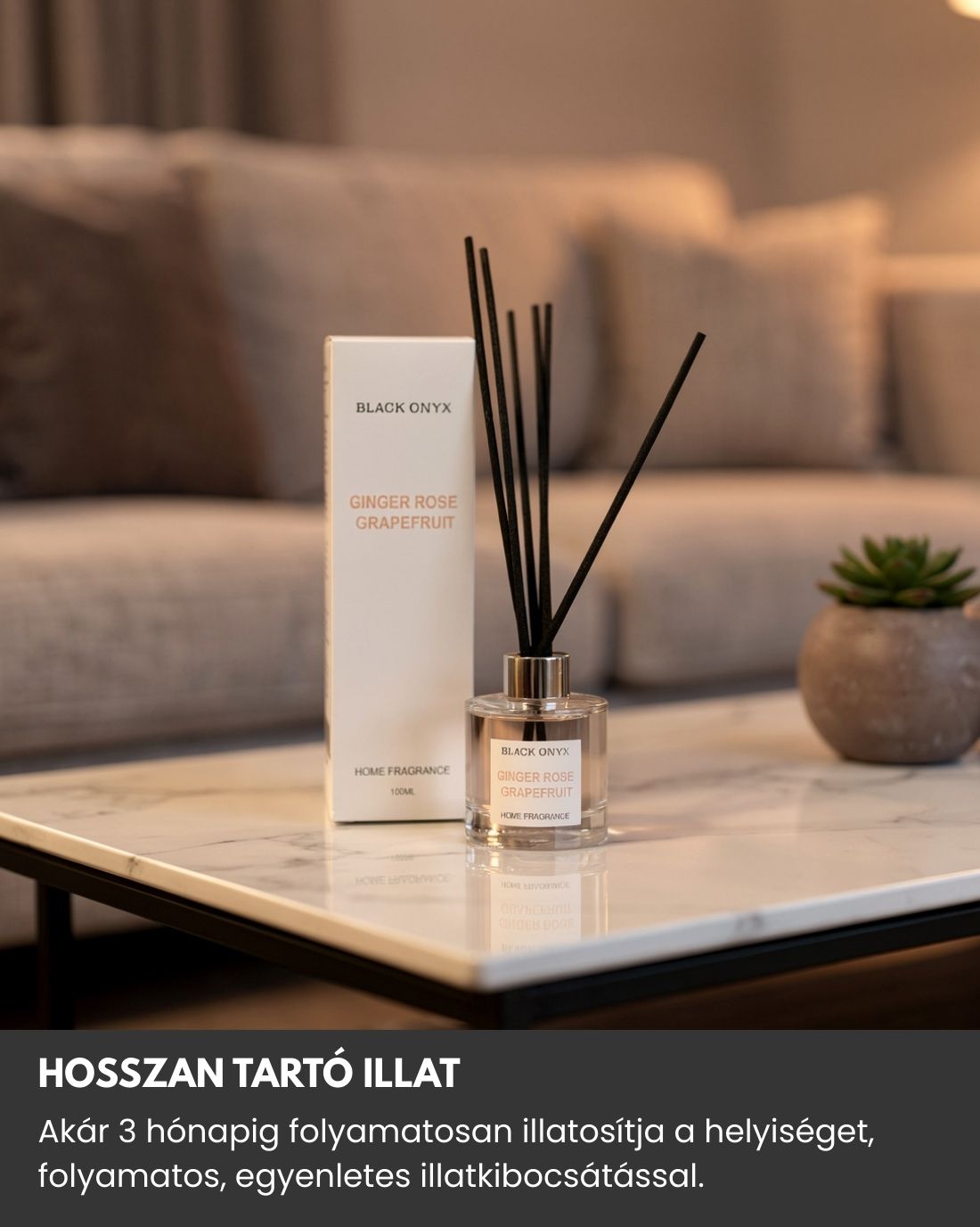 Black onyx home fragrance – gyömbér – rózsa – grapefruit