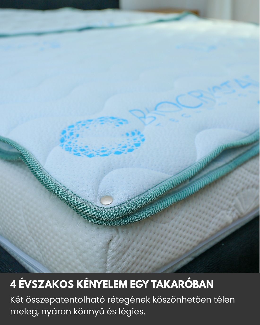 • 4 évszakos, 14 patentos rendszer – Biocrystal 4 évszakos duplatakaró, két réteg, amelyek együtt vagy külön is használhatók