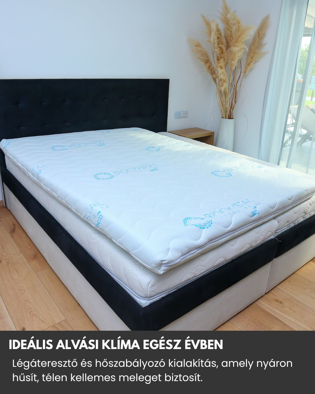 A Biocrystal fedőmatrac több méretben extra kényelmet és egész éves komfortot biztosít. A 16 természetes kristályt tartalmazó technológia a gyártói koncepció szerint hozzájárulhat a nyugodtabb pihenéshez. Légáteresztő, hipoallergén és könnyen tisztítható. Praktikus megoldás a kényelmesebb és harmonikusabb alvásért.