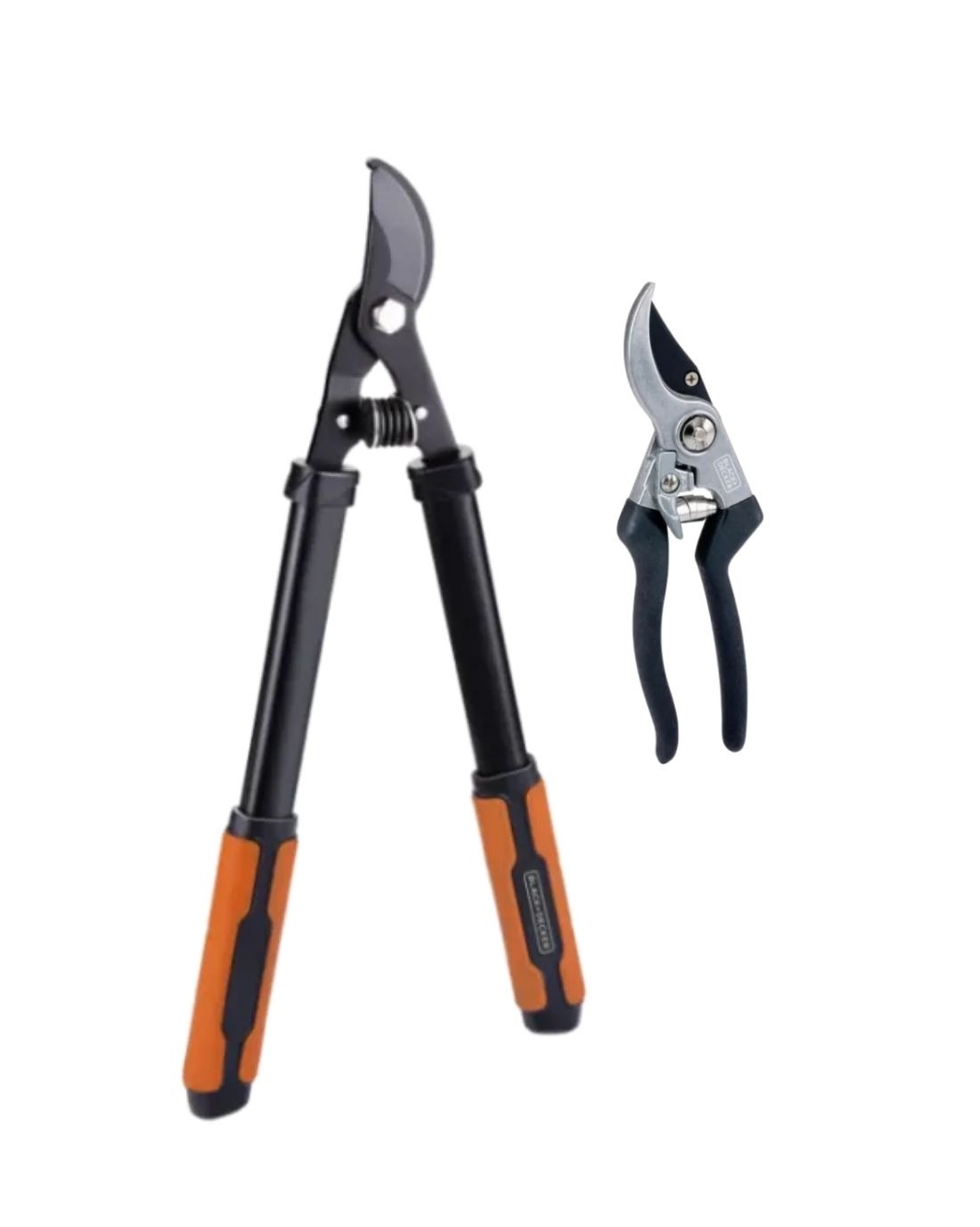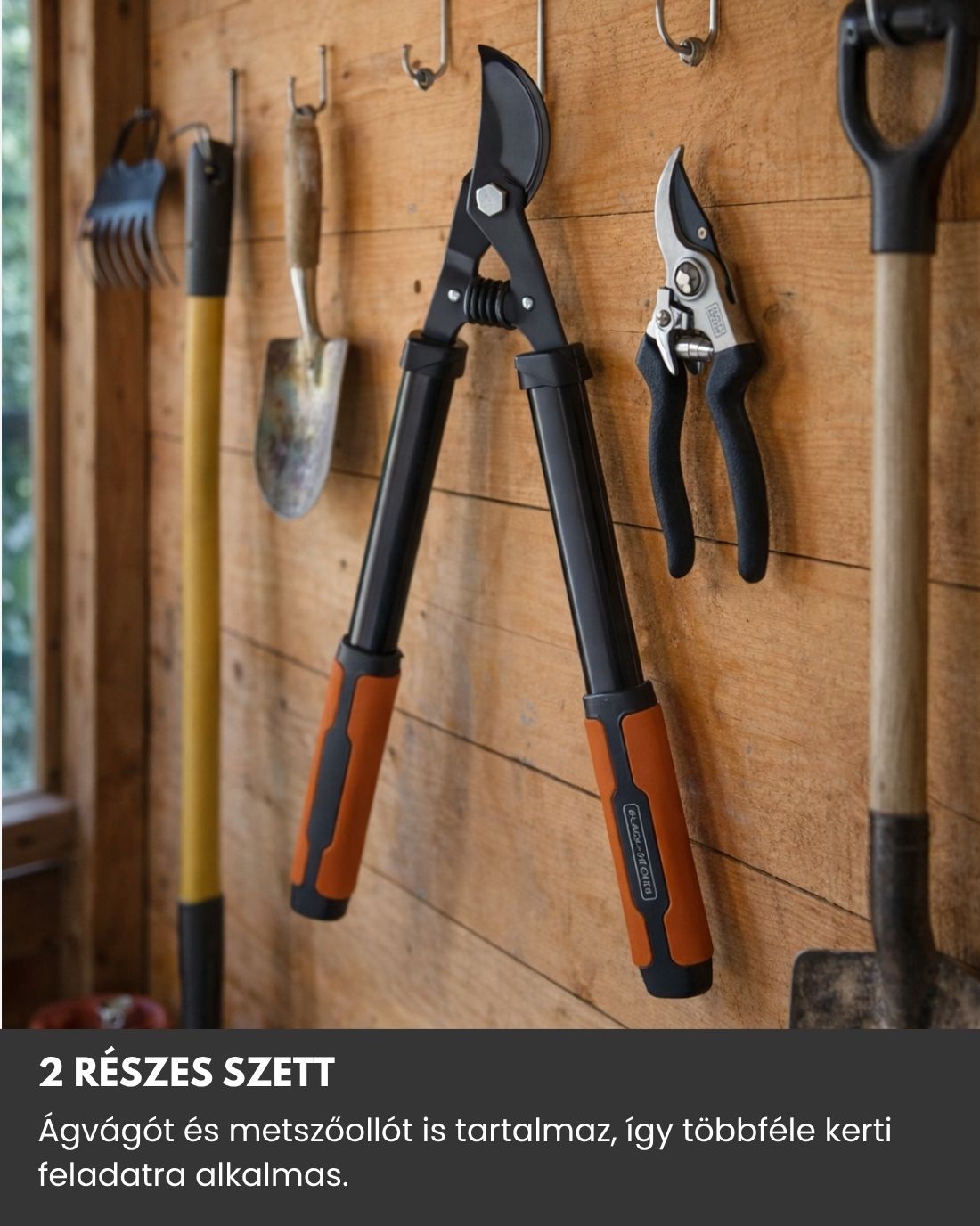 A Black+Decker ágvágó és metszőolló szett ideális választás, ha komplett és hatékony megoldást keresel a kerti metszési feladatokhoz. A szett tartalmaz egy erősebb ágvágót és egy precíz metszőollót, így különböző vastagságú ágakhoz és növényekhez is használható.