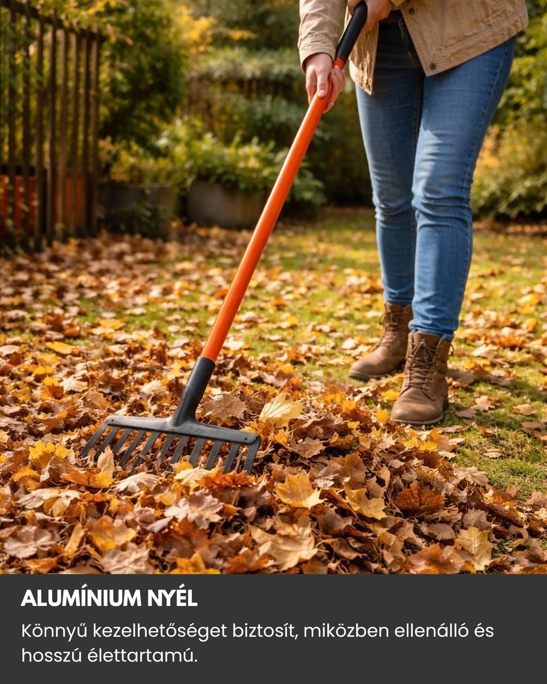 A stabil kialakítás és a minőségi anyaghasználat hosszú élettartamot garantál, miközben a gereblye sokoldalúan használható a kert különböző területein. Praktikus megoldás mindennapi kerti munkákhoz, legyen szó talajelőkészítésről vagy levelek összegyűjtéséről.
