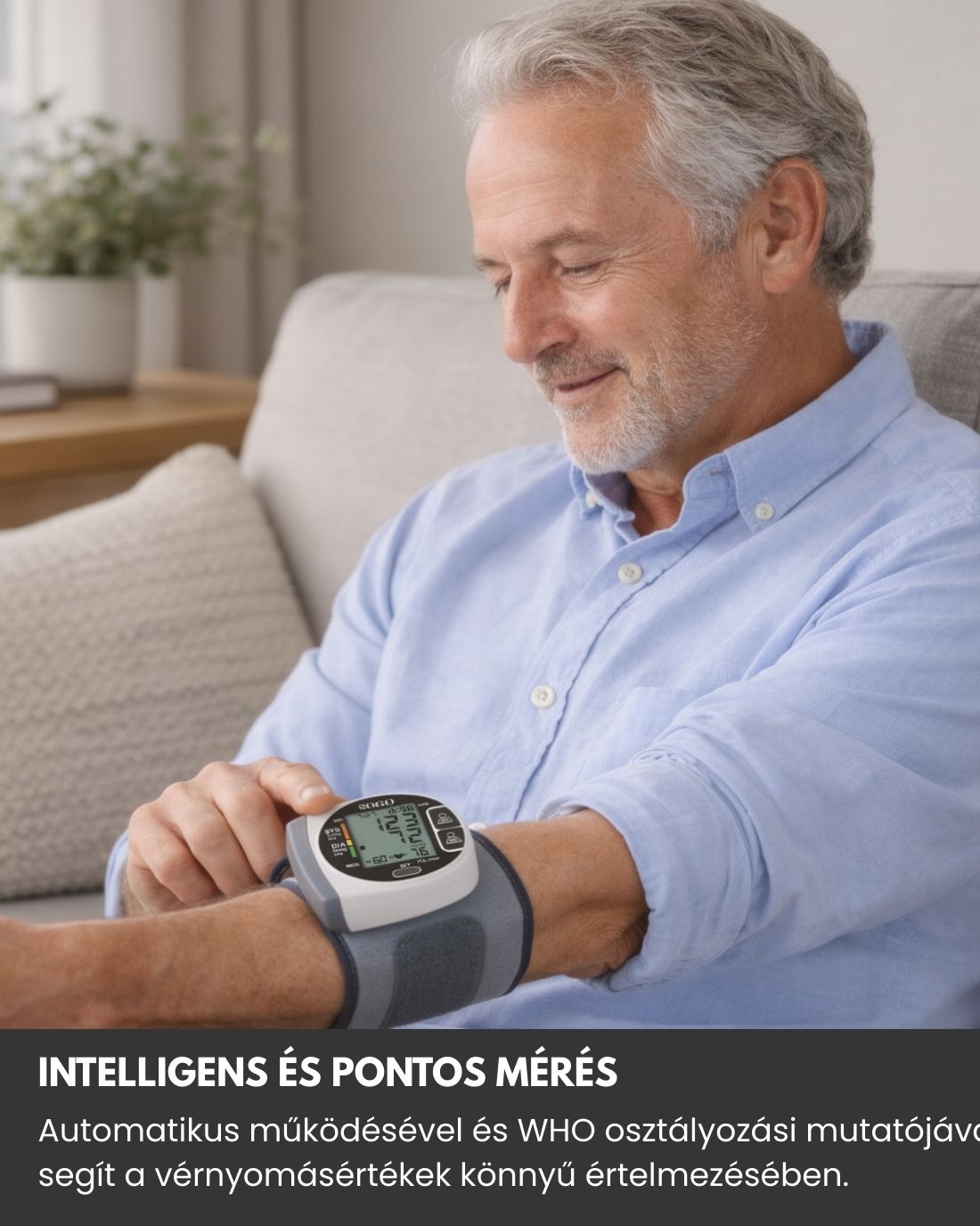 Tartsa kézben egészségét az intelligens csuklós vérnyomásmérővel, amely gyors és precíz mérési lehetőséget biztosít otthon vagy útközben. Ez a készülék ideális mindazok számára, akik szeretnék nyomon követni a vérnyomásukat kényelmesen, egyszerűen és megbízhatóan.