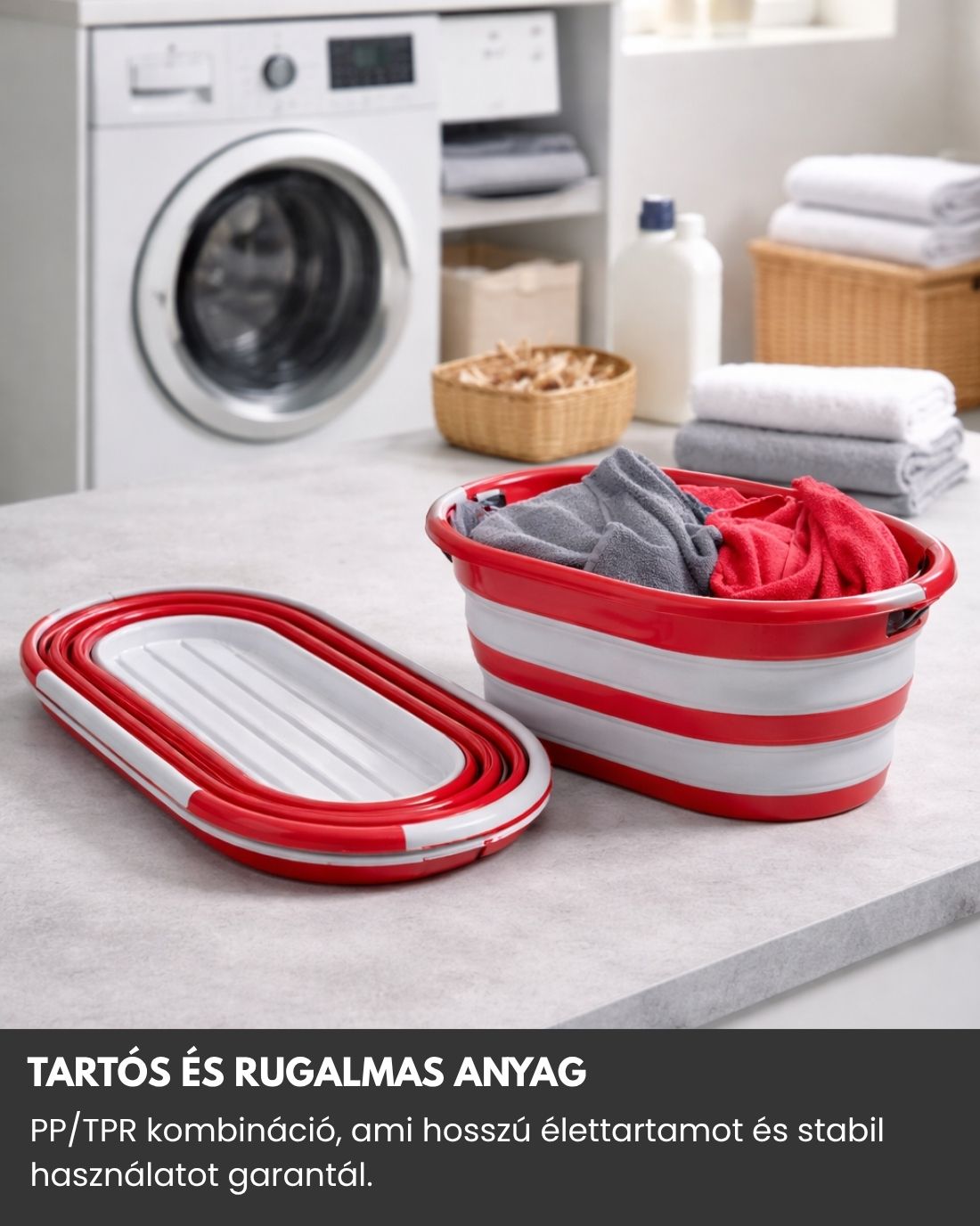 A kosár PP (polipropilén) és TPR (rugalmas műanyag) kombinációjából készült, amely biztosítja: