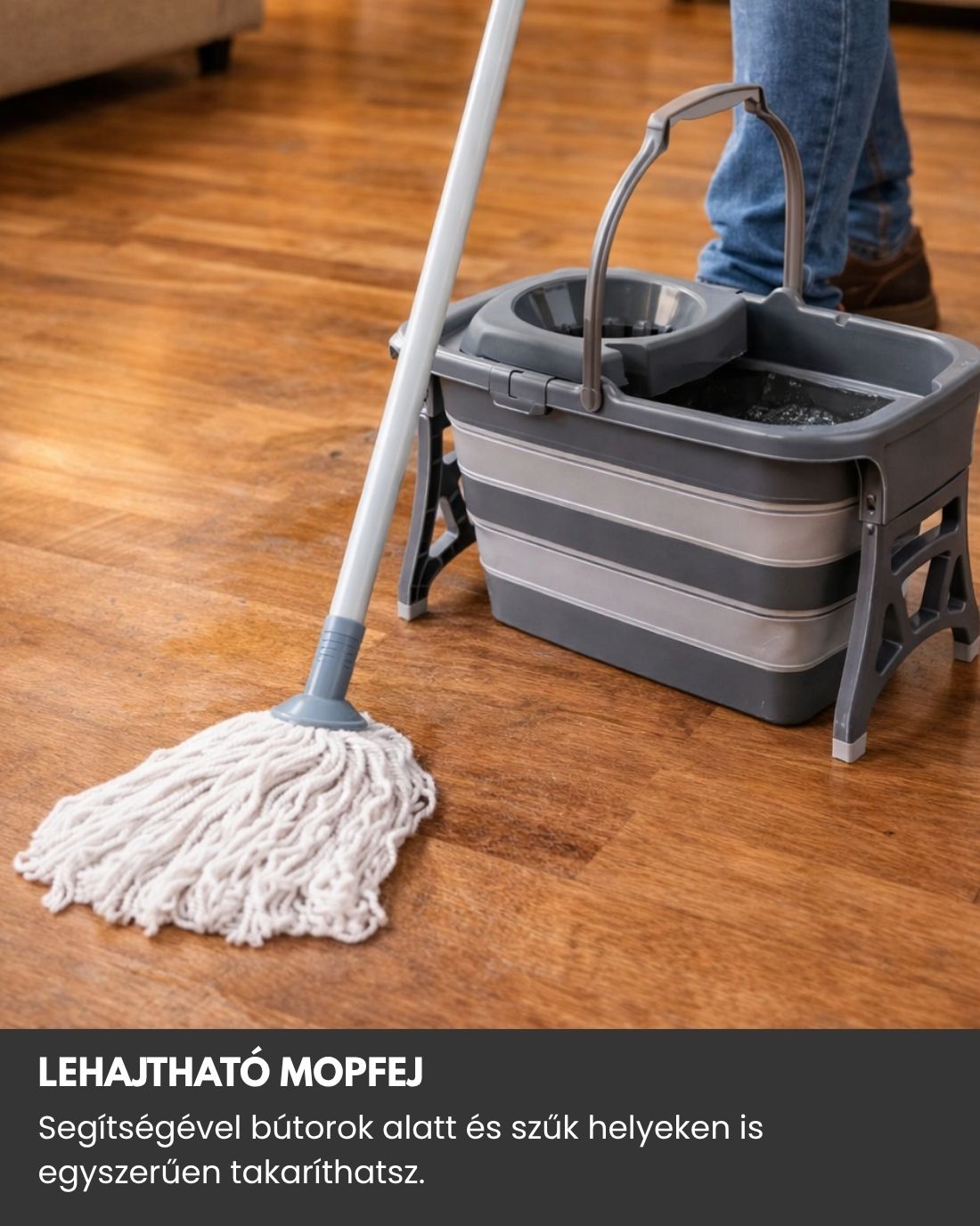 A lehajtható fej különösen hasznos bútorok alatt vagy szűk helyeken, ahol a hagyományos felmosók nehezen férnek hozzá. Ezáltal a takarítás gyorsabbá és alaposabbá válik.