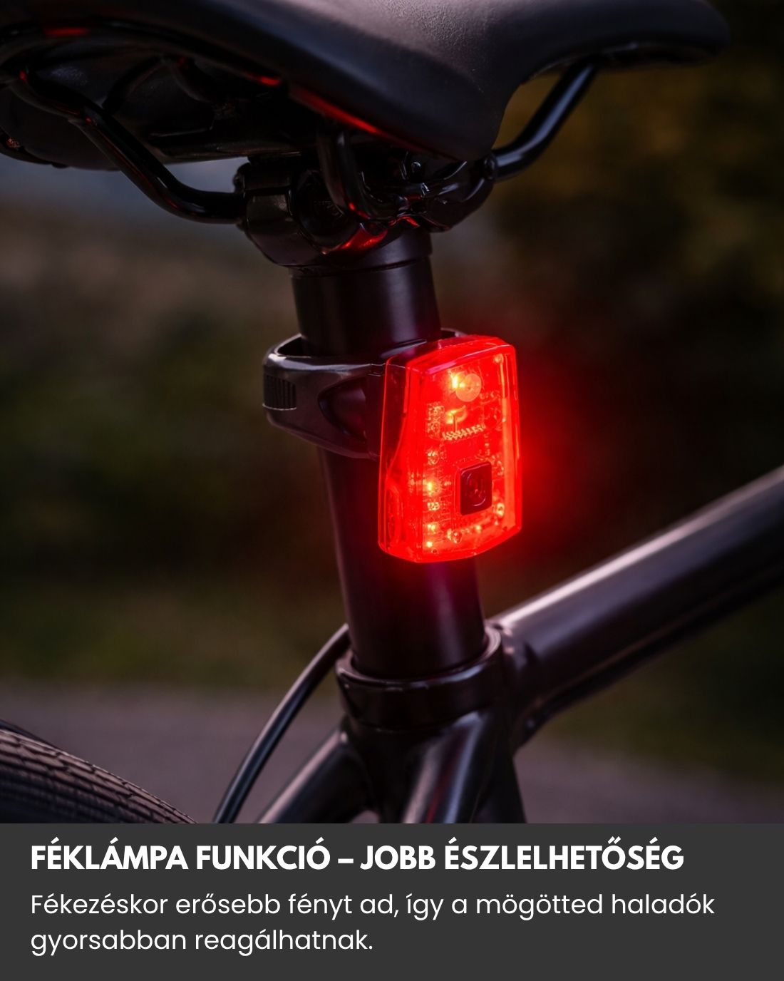 A beépített féklámpa funkció automatikusan erősebb fényt ad fékezéskor, ezért a mögötted haladók gyorsabban észreveszik a lassítást. Ez különösen hasznos városi közlekedés során, ahol a forgalom sűrűbb és a reakcióidő kulcsfontosságú.
