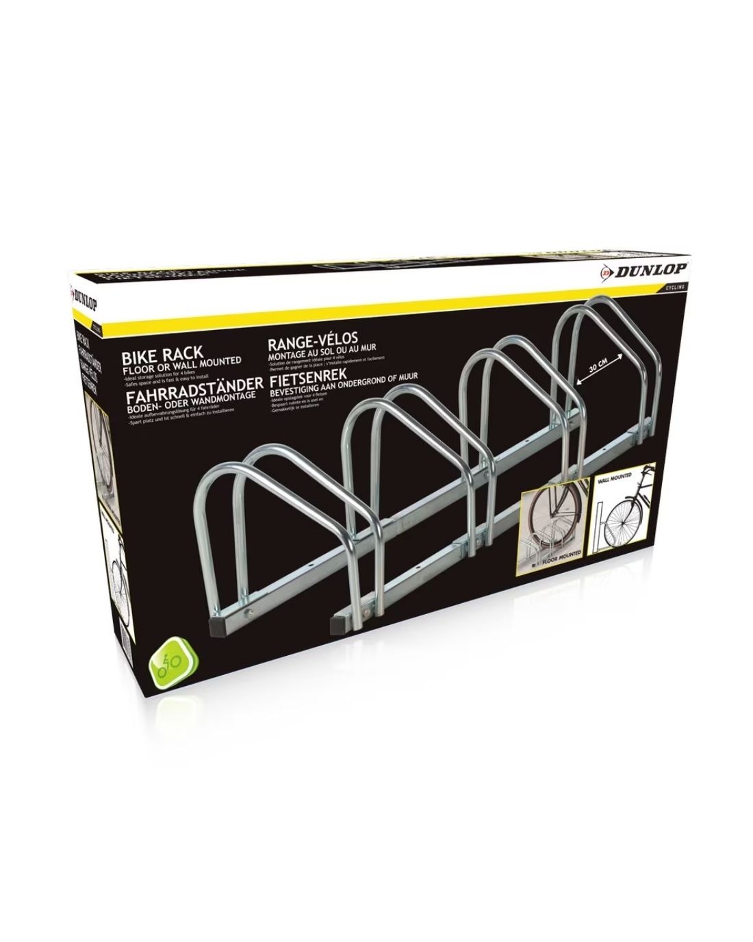 A Dunlop kerékpártartó 4 bicikli tárolására alkalmas. Stabil fém kialakítása biztonságos tartást biztosít.