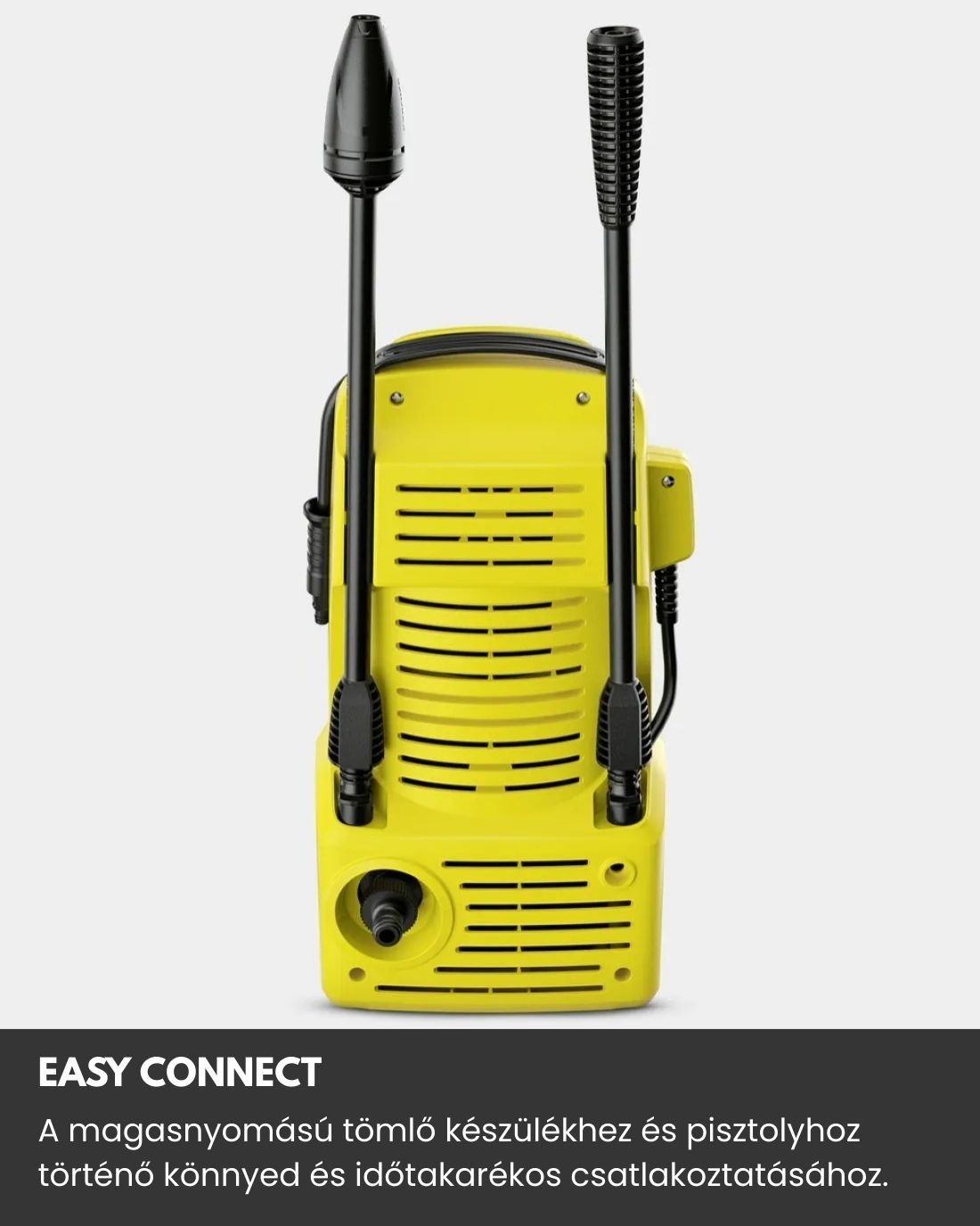 Fedezze fel a praktikus és hatékony tisztítást ezzel a kompakt magasnyomású mosóval! A beépített tartozéktárolásnak köszönhetően a szórószárak mindig kéznél vannak, és a takarítás végén minden helytakarékosan tárolható az eszközön.
