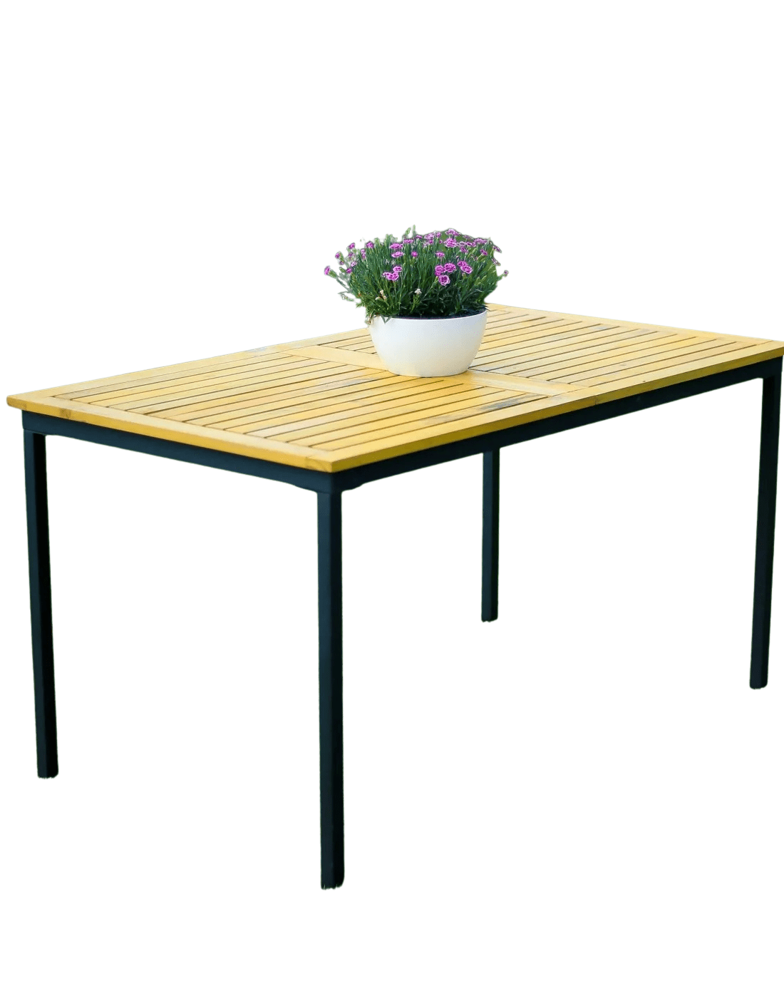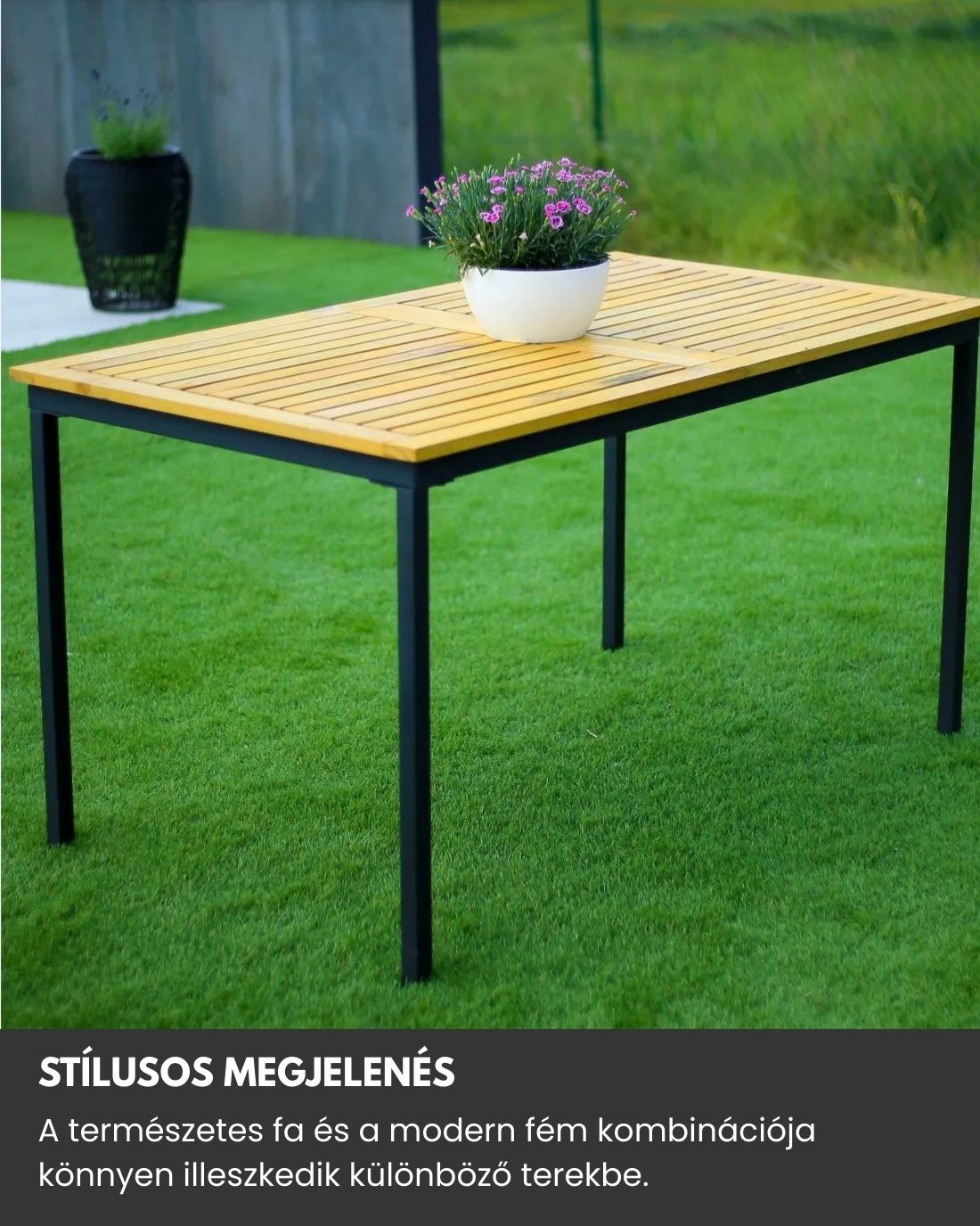 Ez a kültéri étkezőasztal nemcsak mutatós, hanem rendkívül praktikus is. A nagy felület elegendő helyet biztosít ételek, italok és dekorációk számára, így a kültéri életteret valódi központi elemmé varázsolja. A fém váz és az akácfa kombinációja biztosítja a stabilitást és a hosszú élettartamot, miközben a stílusos megjelenés minden kert vagy terasz hangulatát emeli.