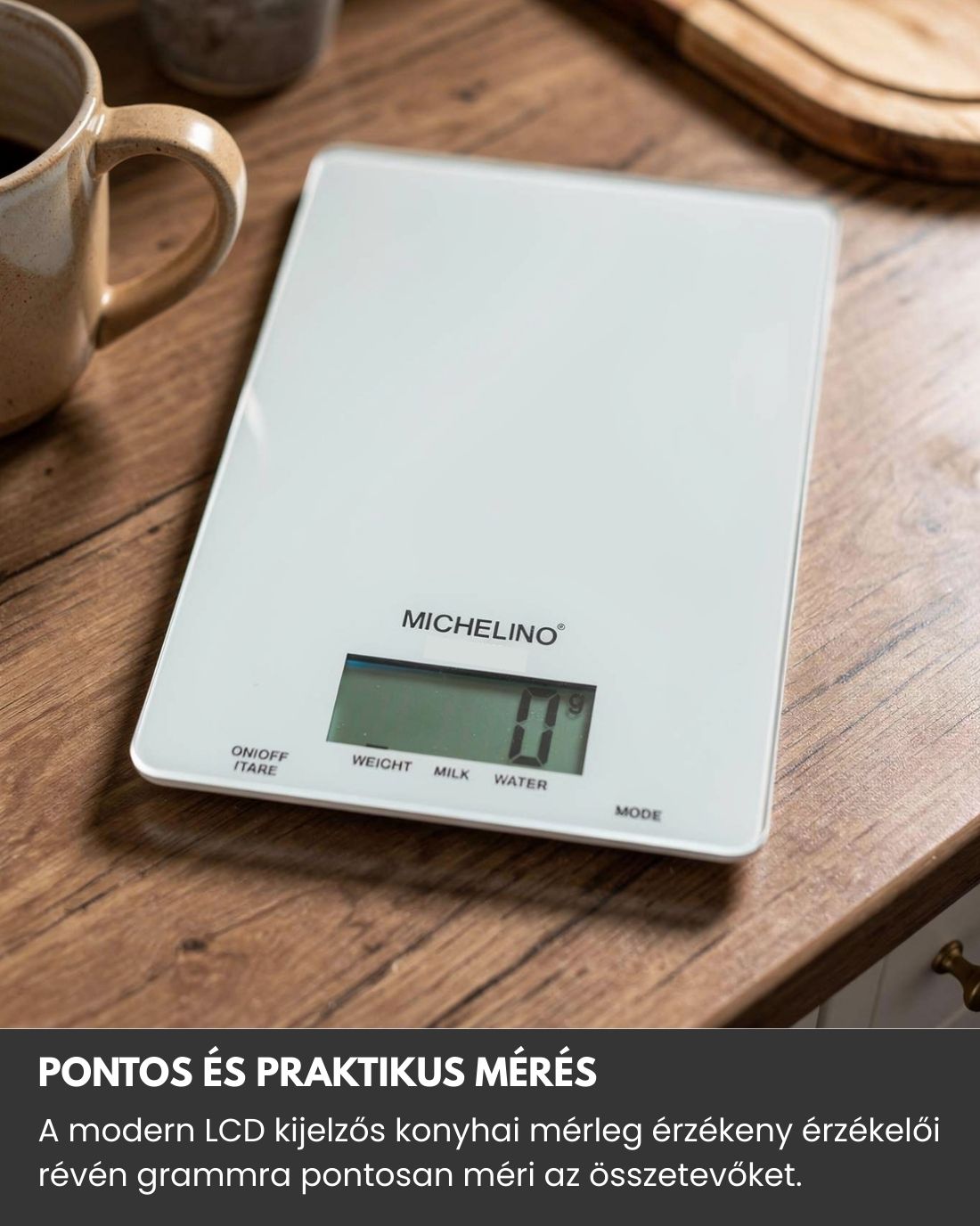 Ez a digitális konyhai mérleg nemcsak pontos, hanem elegáns és praktikus kiegészítője lehet minden modern konyhának.