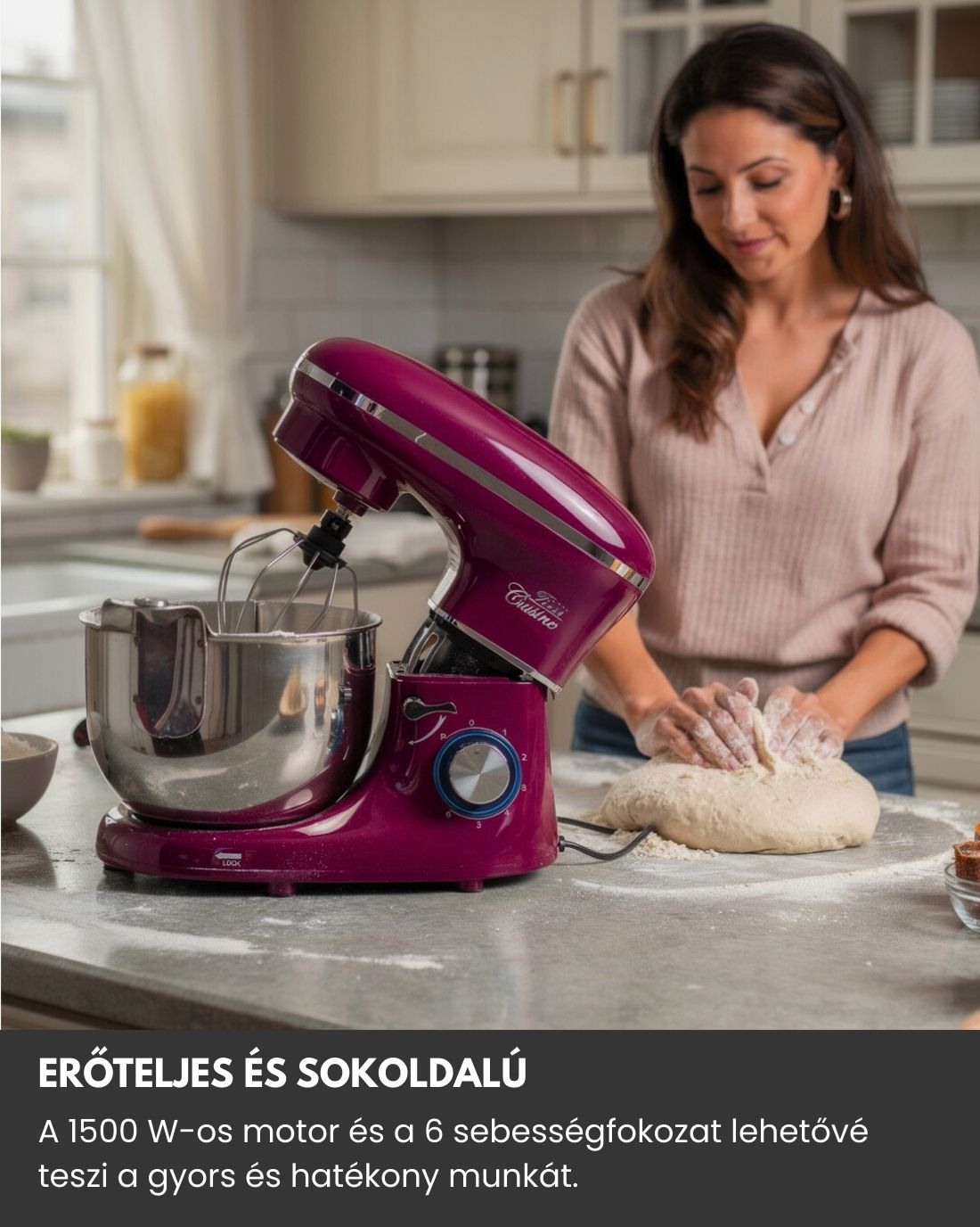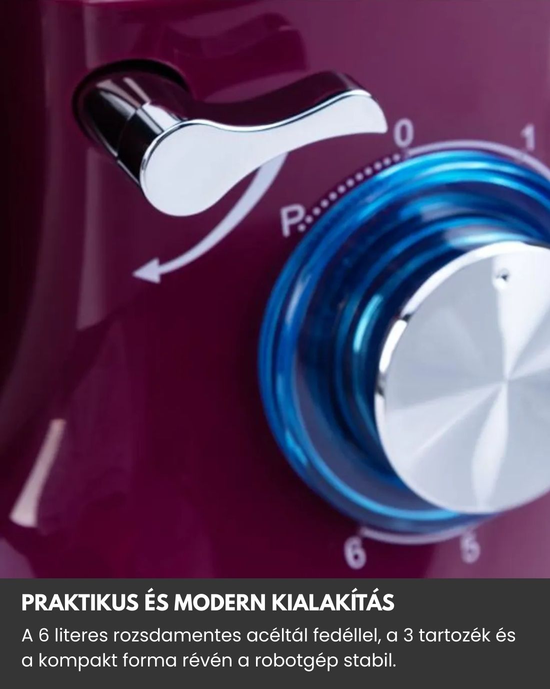 Fedezze fel az otthoni főzés örömét ezzel a kompakt és erős robotgéppel! Gyorsabban és egyszerűbben készítheti el kedvenc ételeit, legyen szó dagasztásról, habverésről vagy turmixolásról. Robotgép 1500 W teljesítménnyel, 6 literes rozsdamentes acél tállal és 6 sebességfokozattal. Ideális dagasztáshoz, habveréshez és keveréshez minden konyhába.