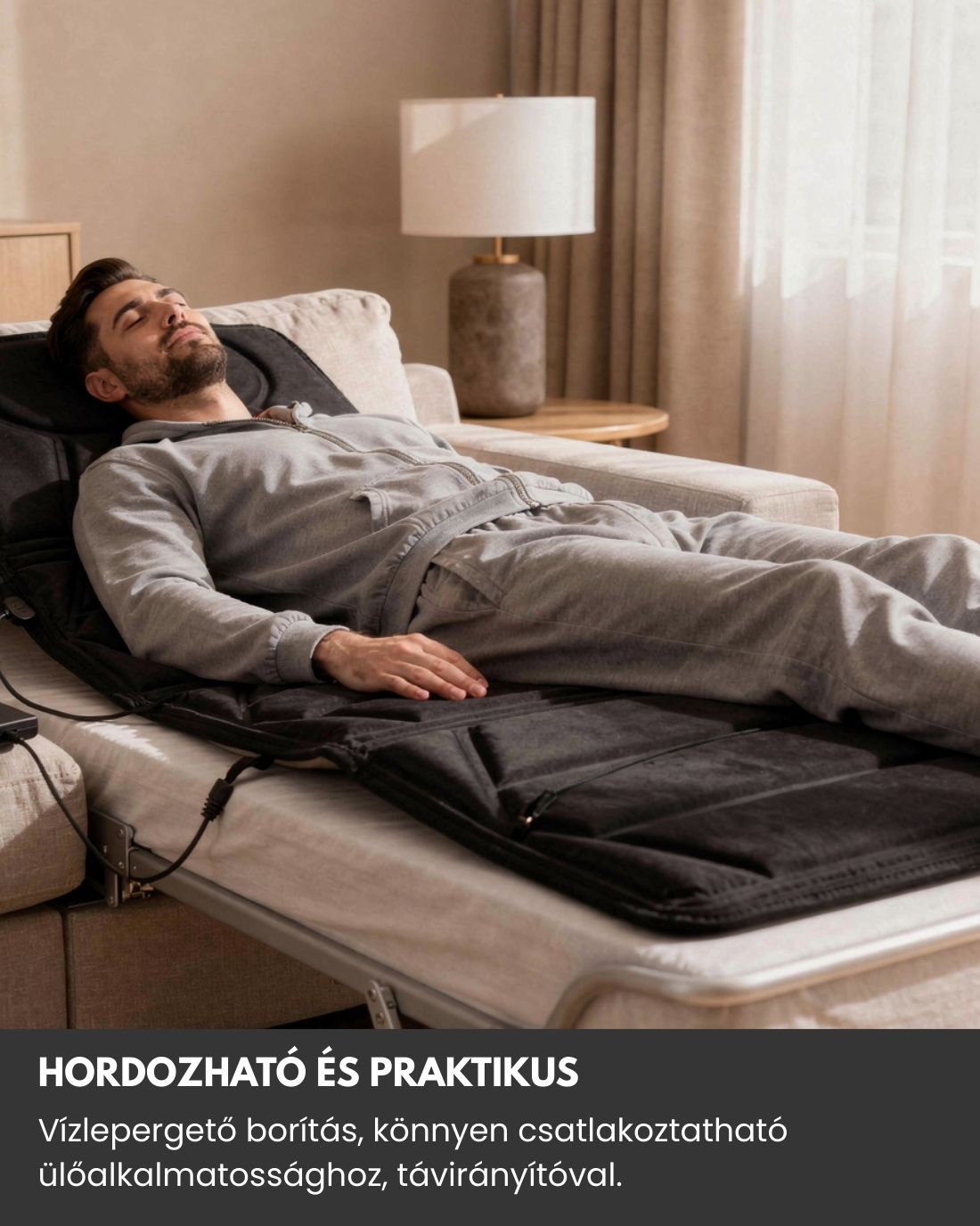 - 4 testzóna masszírozása egyszerre: hát, derék, comb, vádli