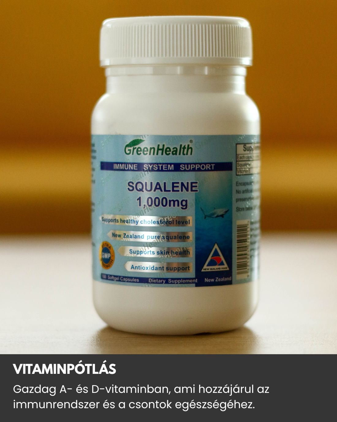 - Hatóanyag-tartalom: 1000 mg szkvalén / kapszula