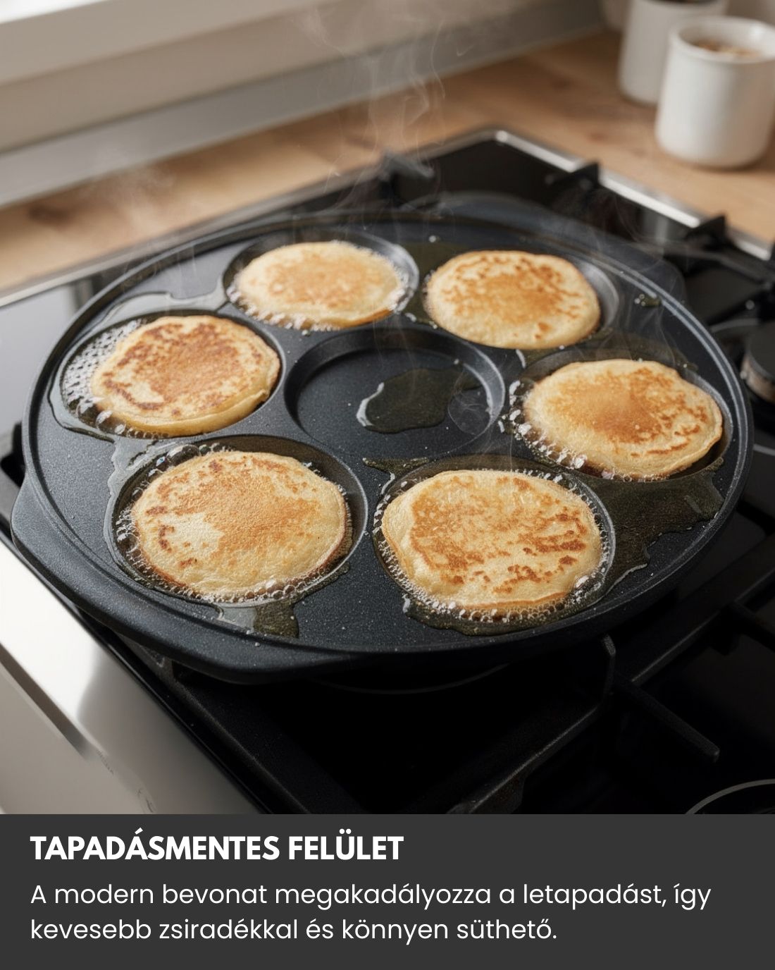 • 7 mini sütőfelület egy serpenyőben – ideális tojás, palacsinta, amerikai palacsinta és omlett készítéséhez